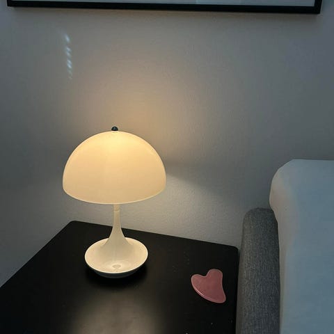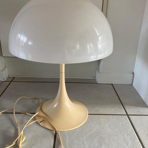 Panthella bordlampe designet af Verner Panton. Den originale store bordmodel med trykknap på foden.