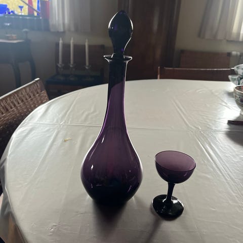 C.L.O.C likør karaffel i grøn glas og tin top og prop