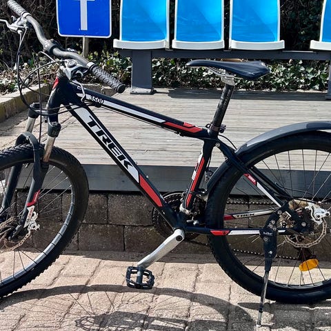 Trek mountainbike til unisex med stelstørrelse M og 27,5" hjul. Cyklen har affjedret forgaffel, skivebremser og flere gear, egnet til både hverdagscykling og kørsel på skov- og grusstier. Farven fremstår som en kombination af mørke nuancer med kontrastdetaljer. Velegnet til ryttere, der søger en alsidig mountainbike i mellemstørrelse.