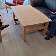 Skovby sofabord i massivt bøg med indbygget skuffe samt udtræksklap og har derudover også en hylde.
