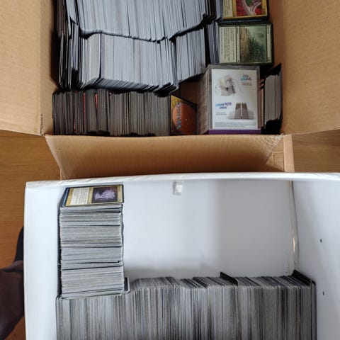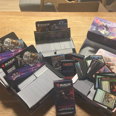 Hej! Jeg sælger stort set alle de kort, som ikke er i brug i mine decks. Der er tale om over 1000 kort med en samlet værdi på lige omkring 2000 kr - jeg har primært spillet commander, og der er en masse playables iblandt. Jeg forestiller mig det er en super fed samling at få fingre i, hvis du spiller commander men er relativt ny i hobbyen og derfor ikke har mange kort hjemme.
