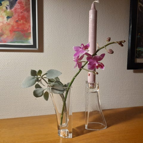 Blå Holmegaard lysestager, kertestager. Prisen er for de to