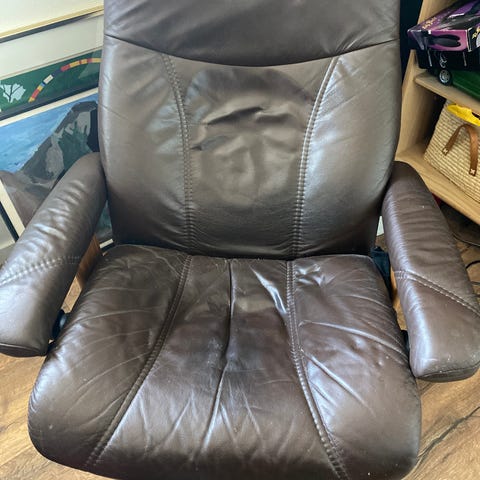 Lænestol i gråt læder