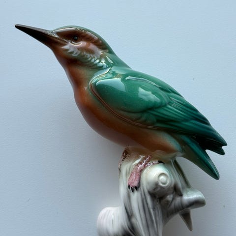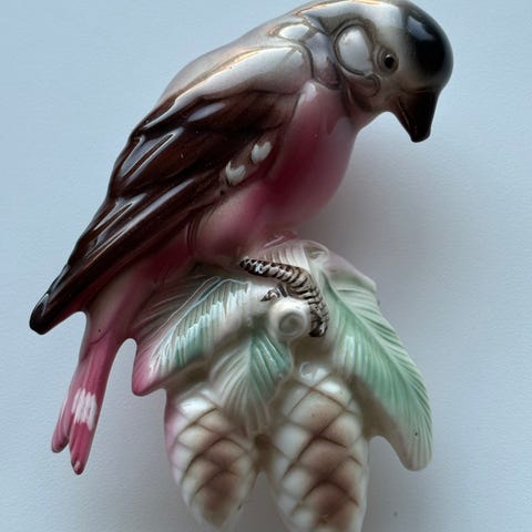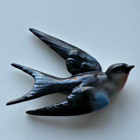 Fin og charmerende vintage porcelæns fugl i flugt til ophæng på væg.