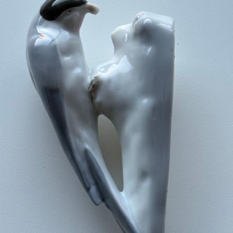 Sød vintage porcelæns fugl i flugt – vægophæng