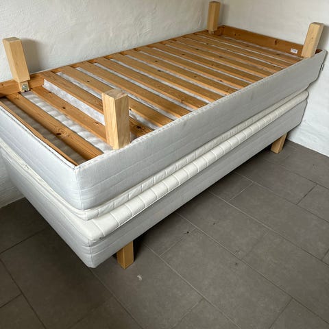 Stål benene er tilpas høje til at have kasser mm. Under sengen.