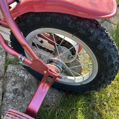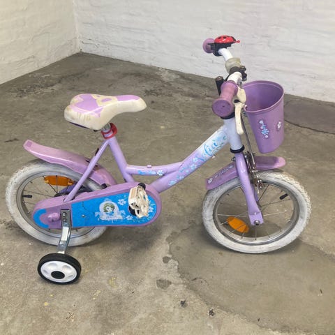 En lille fiks pige cykel til de mindste. 12 tommer hjul. God stand, 1 gear, skærme, reflekser for og bag, samt små perler i hjulene. Der medfølger ikke støttehjul, men cyklen er klar til at få dem monteret hvis dette behøves.