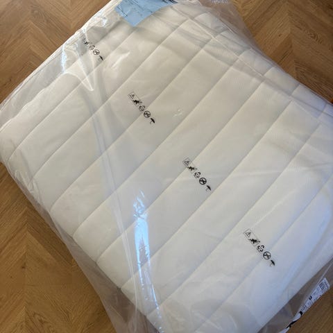 IKEA TUDDAL madras i hvid. Madrassen har quiltet overflade og aftageligt betræk med lynlås, som kan vaskes ifølge vaskeanvisningen på mærket. Velegnet som topmadras eller ekstra madras til seng eller gæsteseng, afhængigt af mål og sengesystem.