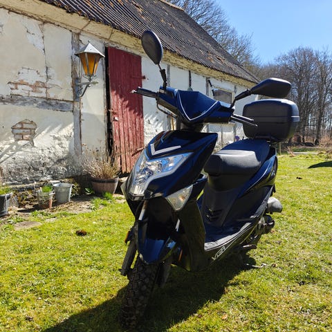 Har nogle skader i siderne. Ved ikke andet end det en vga explora 4 4takt. Den køre omkring 45-50 lige nu. Både el og kickstarter virker så den er kørebar kan afhentes i Odense. Har købt den secondhsnd så har beviser på den ikke er stjålet :)