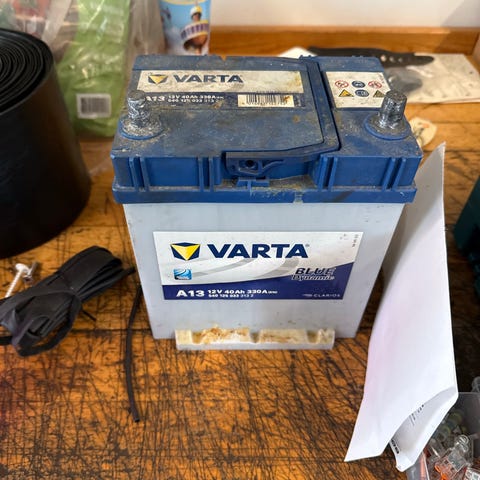 Det er ret nyt og menes at have været i en bil, der kun har kørt ca. 2.000 km. Jeg har et andet batteri med min bil, så denne er blevet overskud.