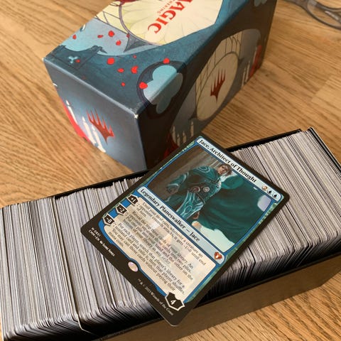 I bunken er 40 forskellige mythic og 480 forskellige rare kort, hvoraf 98% er på engelsk.