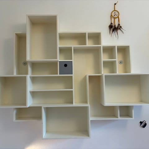 Sælger denne flotte og fleksible Kartell Bookworm reol, der fungerer som både opbevaring og dekorativt element på væggen. Reolen kan formes efter ønske og giver et unikt, organisk udtryk.
