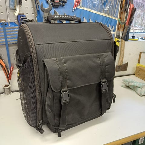 Fed taske fra amerikanske biltwell. Lavet til at montere på sissybar, men kan monteres på andre måder også. Padding til ekstra ryglæn, lomme til værktøj, regnovertræk osv. der følger en lille camo molle taske med som sidder på siden.