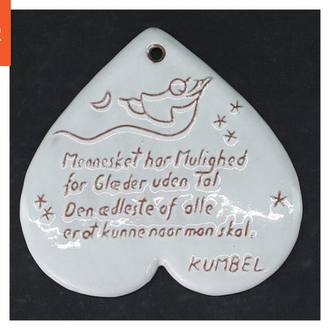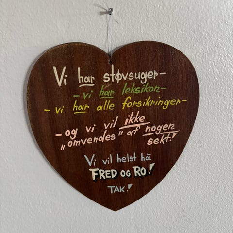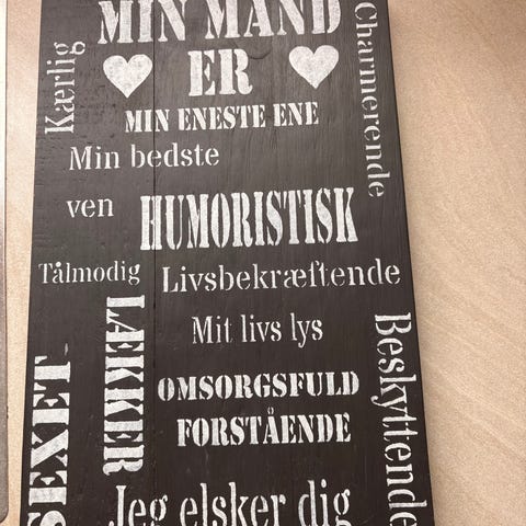Hjerteformet vægskilt med humoristisk tekst (str. 13 cm)