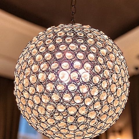 Stor krystal-pendellampe fra cristallstrass, Italien, i næsten ny tilstand, midcentury modern stil med Art Déco-inspirerede facetperler og en gylden buet ramme, 58 cm bred, 40 cm høj (80 cm med kæde), dybde 40 cm, fra 2020+, i funktionsdygtig stand og komplet. Klik på den blå "gå til varen" knap, for at købe eller byde på denne vare. Den samlede pris vil blive vist inden du afgiver dit bud.