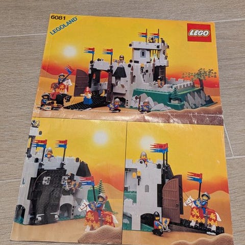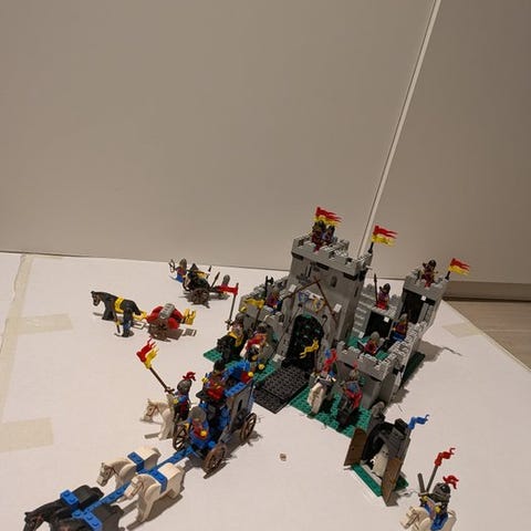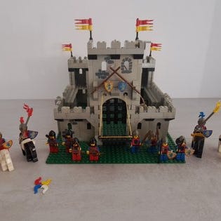 LEGO sæt 6080 King’s Castle, 627 klodser, 12 minifigurer, fra Danmark, udgivet 1984, brugt men i meget god stand, komplet med original æske og manual, åben æske, funktionel trækbro og tre sammenkoblede basplader. Klik på den blå "gå til varen" knap, for at købe eller byde på denne vare. Den samlede pris vil blive vist inden du afgiver dit bud.