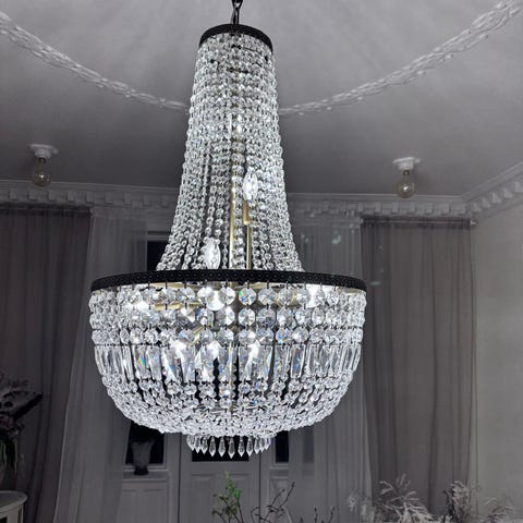 Louis LX krystal lysekroner, et par i fremragende stand med 24 karat guldramme og Swarovski Strass krystaller, dimensioner 26 cm bred og 32 cm høj (samlet højde 82 cm inklusive loftsplade og kæde), oprindelse Italien, periode 2010–2020, to genstande, i funktion. Klik på den blå "gå til varen" knap, for at købe eller byde på denne vare. Den samlede pris vil blive vist inden du afgiver dit bud.