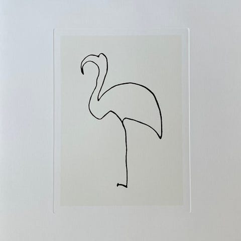 Gammel farveret reproduction efter en tegning af Picasso, fransk udgave under licens SPADEM, formidlet af Nouvelles Images, med copyrightangivelse og trykkerens tørstempel. Underskrift og dato i pladen.