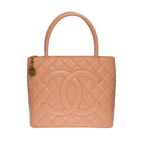 Medaillon Tote, i blødt rosenfarvet matelassé-læder med stort CC-frontlogo og indgraveret gyldent vedhæng, repræsenterer den perfekte balance mellem klassisk elegance og nutidigt ånd.