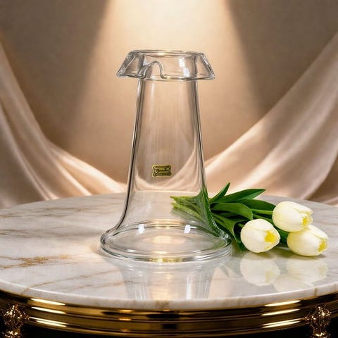 Håndformet af smeltet glas repræsenterer dette stykke autentisk bohemsk håndværk. Hver vase er individuelt dannet, hvilket gør hvert eksemplar let unikt — et