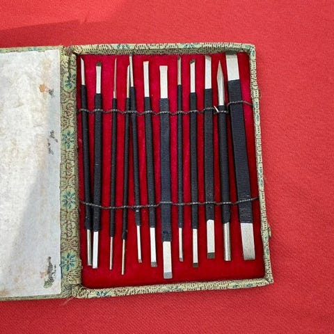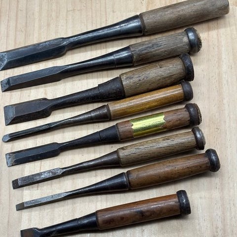 This is a vintage set of Japanese chisels for carpentry and woodcarving.