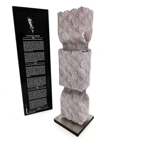 Ad van Hassel, 1953, præsenterer Luxury Art Candy Toffee - Roy Lichtenstein, et værk i mixed media fra 2023 med laser-skåret og ovn-falset perspex på en luksuriøs base, håndsigneret, ca. 33×10×10 cm, vægt 1 kg, oprindelse Nederlandene, med COA og sort luksusæske. Klik på den blå "gå til varen" knap, for at købe eller byde på denne vare. Den samlede pris vil blive vist inden du afgiver dit bud.