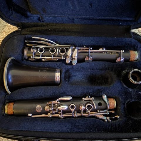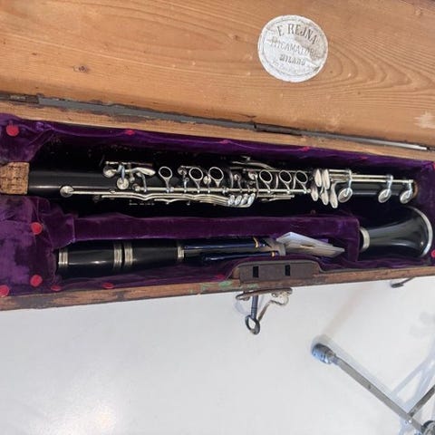 Klarinet af det prestigefyldte mærke "Amati" og dens mest gennemførte model Kraslice. Den er fuldstændig restaureret med helt nye pads. Fjederne og nålefjedrene er også blevet restaureret. Alle dele er originale undtagen klokken, som er af plastik; de to spidser og barrileten er af et ældgammelt ebenholz, som blev brugt i dengang, og i netop disse modeller især mærkes ved den blanke finish, som stadig bevares, selvom jeg må tilføje, at den er blevet både indvendigt og udvendigt forynget med essentielle olier. Når jeg siger, at den er restaureret fuldstændigt, mener jeg, at de chimeneas, som blev placeret i fremstillingen med skruetilslutning, gennem årene har en tendens til at lede luft og være svære at få til at spille
