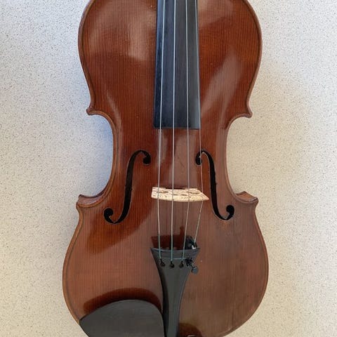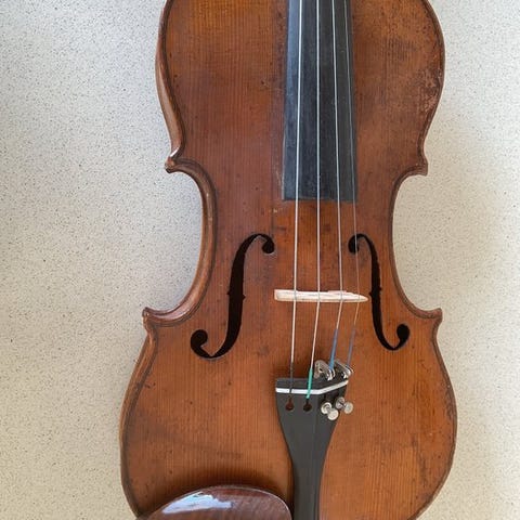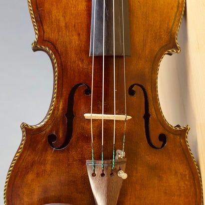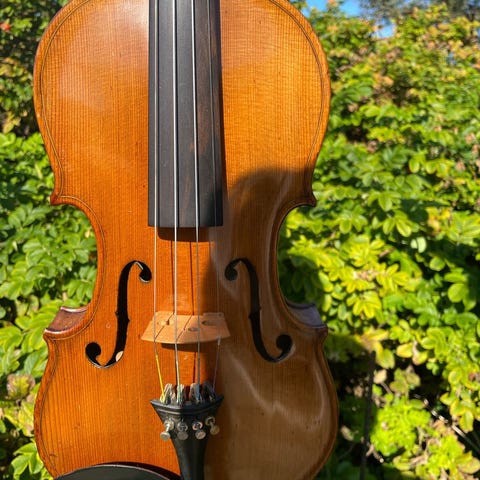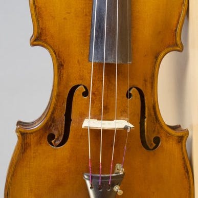 Gammel violin af Julius Heinrich Zimmermann - J.H.Z, bygget omkring 1880. Den fra Sternberg stammende Julius Heinrich Zimmermann åbnede sine succesfulde værksteder i slutningen af 1800-tallet, efter Leipzig også i Petersburg, Moskva og Riga som hofleverandør til det russiske zarhuse kendt.