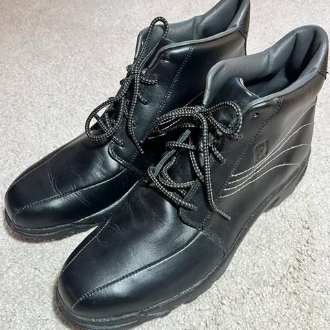 FootJoy Pro Series golfsko i hvid farve i størrelse 45. Skoene er snøremodeller med overdel i glat materiale og mesh-detaljer ved vristen. Ydersålen er designet til brug på golfbanen. Velegnet som golfsko til herre i størrelse 45.