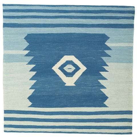 Gennem sin næsten kvadratiske størrelse egner dette kilim sig ideelt som dekorativt accentstæppe i stuen, soveværelset, gangen eller også som et særligt designelement i moderne og klassiske