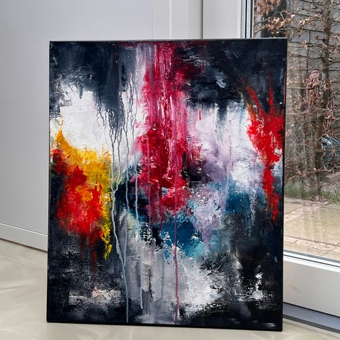 Billedet fra 1981, med dimensionerne 65 × 55 cm og smukt indrammet, er et smukt eksempel på hans evne til at lade farve, form og komposition smelte sammen til en levende og indgribende visuel oplevelse. I dette værk er penselens energi tydelig, mens fladerne og linjerne finder en balance mellem spontanitet og