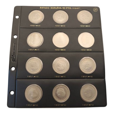 Et ark med 25 pesetas mønter af Franco (alle år i nikkel).