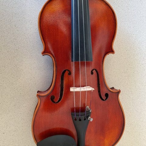 Violinen er fint bygget med smukke detaljer, violinen har en gennemtrængende varm klang og spiller nemt.