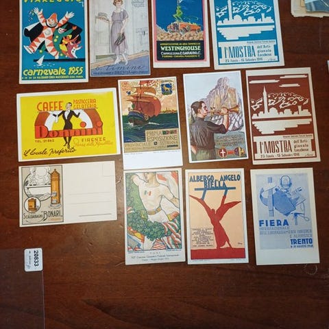 Lot på 79 italienske landskabs-postkort fra 1900–1950, med tema Italia, paesaggistiche, colonie e pubblicitarie, i god stand. Klik på den blå "gå til varen" knap, for at købe eller byde på denne vare. Den samlede pris vil blive vist inden du afgiver dit bud.