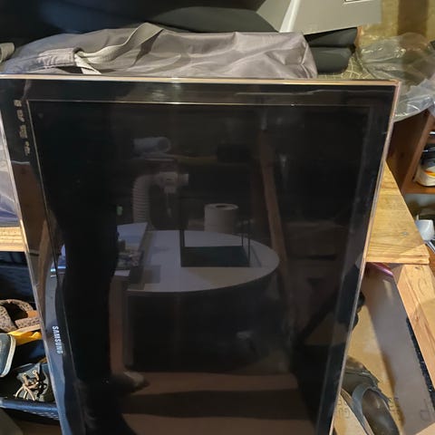 Samsung fladskærms-tv i sort. Tv’et står på to fødder i hver side. Skærmen fremstår med tydelige skader og kraftige striber/forstyrrelser i billedet, som det fremgår af billederne. Kan eventuelt anvendes til reservedele, f.eks. kabinet, fødder, strømforsyning eller andre indvendige komponenter, hvis de fungerer. Yderligere tekniske specifikationer som modelbetegnelse, skærmstørrelse og opløsning fremgår ikke tydeligt af oplysningerne og bør kontrolleres på mærkaten bagpå tv’et.