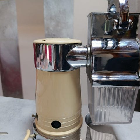 Det var årene med økonomisk velstand og tro på fremtiden, hvor den helt italienske Quick Mill lancerede de første affettatricier til husholdningsbrug på markedet. Den pågældende mulighed er den mytiske affettatrice Omre, ikon for Vintage Design Made in Italy, i en sjælden og fængende Ferrari-rød farve. Den er i perfekt stand, lette tidsmærker (den hvide farve synlig i billederne er flashes) en lille skade på 2 cm, let og ikke dyb, på en forreste fod (alt er nævnt udelukkende for fuld korrekthed).