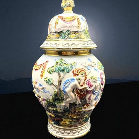 Majestætisk kaffeservice til 12 personer produceret af M.A.S. manufakturen i Capodimonte.