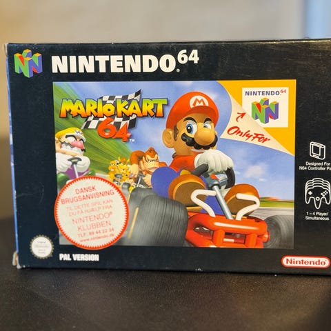 Nintendo, Nintendo 64, N64 Classic Super Mario Kart-udgave (2000) i funktion, i original æske, samlerens tilstand (ældre lager) med æske, spil, vedhæftning, manual og plakat. Klik på den blå "gå til varen" knap, for at købe eller byde på denne vare. Den samlede pris vil blive vist inden du afgiver dit bud.