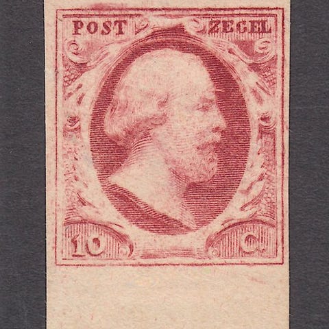 Rød keurstempel EK i oval (Evert Kroon) og blyantsignering. Albumsort på gum, ellers