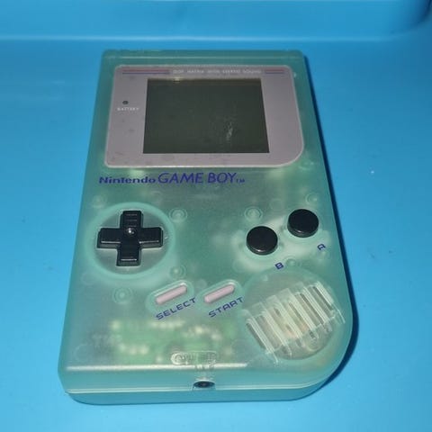 1x Gameboy Classic DMG-01, 1989 i mint tilstand, skærmen er fuldstændig ridsefri og konsollen også, den er helt renoveret ved brug af originale dele såsom batterikontakter, strøm- og kontrolknapper mv., den fungerer, nogle få døde pixels som ikke påvirker gameplayet