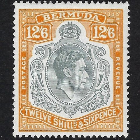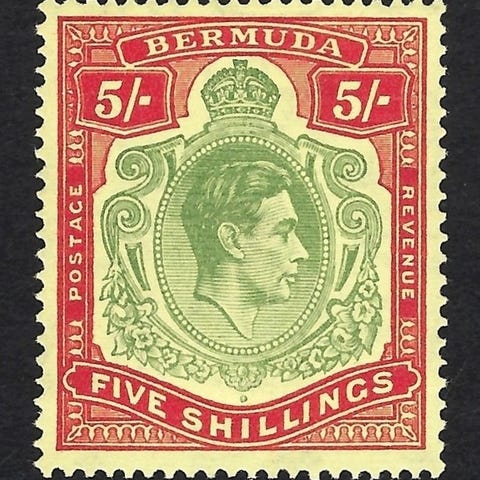 Fra Bermuda, Giorgio VI 5 s. blegt grøn og rødgul, mint uden gum, SG 118a. Klik på den blå "gå til varen" knap, for at købe eller byde på denne vare. Den samlede pris vil blive vist inden du afgiver dit bud.