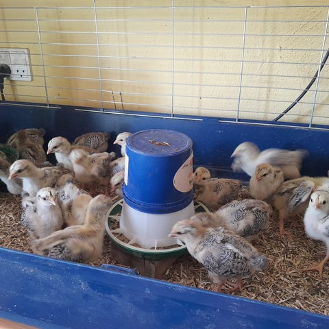 Daggamle kyllinger klækker 5/4 pris 80 kr stykket.