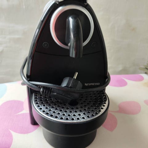 Nespresso kapselkaffemaskine i sort. Maskinen er beregnet til brug med Nespresso-kapsler og har aftagelig drypbakke foran.