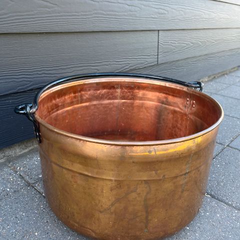 Kobberspand, Pæn kobberspand med 2 håndtag med 2 porcelænshåndtag.