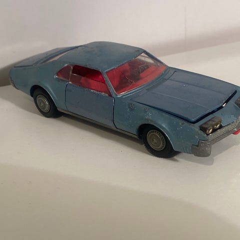 Tekno Ford Thunderbird modelbil i metal. Klassisk cabriolet i gul med lyse indvendige detaljer og sølvfarvede kofangere. Undervogn i metal med påstøbt producent- og modelangivelse. Egnet som samlerobjekt eller udstillingsmodel. Bilen er renoveret.