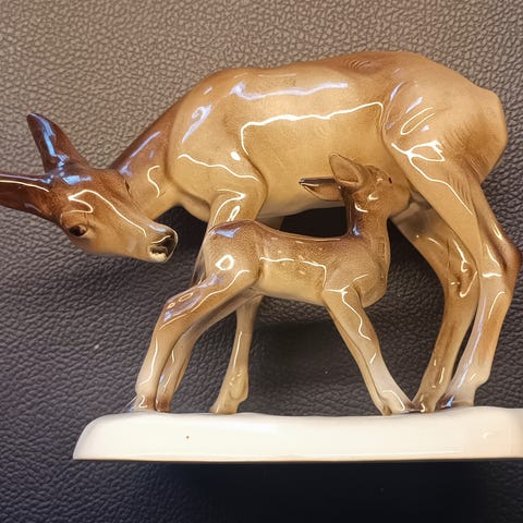 Bing & Grøndahl liggende rådyr figur i porcelæn. Figuren forestiller et rådyr, der ligger ned med benene trukket ind under kroppen. Glasuren er i brune og lyse nuancer. Undersiden har Bing & Grøndahl stempel og modelnummer 2618. Egnet som pyntegenstand i f.eks. stue, vitrineskab eller samling af porcelænsfigurer. Rigtig fin figur nr 2648 fra Royal Copenhagen. 1. sortering. Kommer fra et ikke ryger hjem.