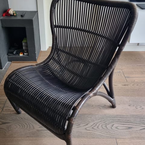 Sælger denne flotte design lænestol i rattan, skabt til både komfort og funktionalitet. Den måler 80 cm i bredden og har en ryglænshøjde på 55 cm, hvilket giver en behagelig siddeoplevelse – også ved længere tids brug.