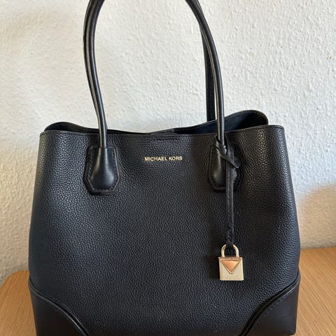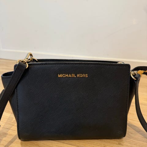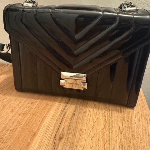 Michael Kors skuldertaske sort. Tasken har justerbar skulderrem og lukkes med lynlås. Indvendigt er der to separate rum med lynlås, mindre rum indeni og plads til kort.