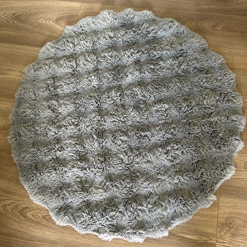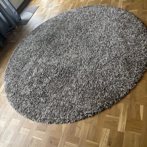 Ilva rundt tæppe i grå farve. Tæppet fremstår som et blødt, langluvet tæppe, velegnet til brug i stue, soveværelse eller andre opholdsrum. Formen er cirkulær og passer godt under sofaborde, mindre spiseborde eller som fritstående gulvtæppe i rummet.