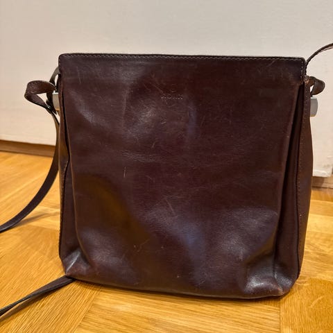 Godt brugt taske i kernelæder - fed patina. Er 25-30 år gammel, men det gør den kun bedre!